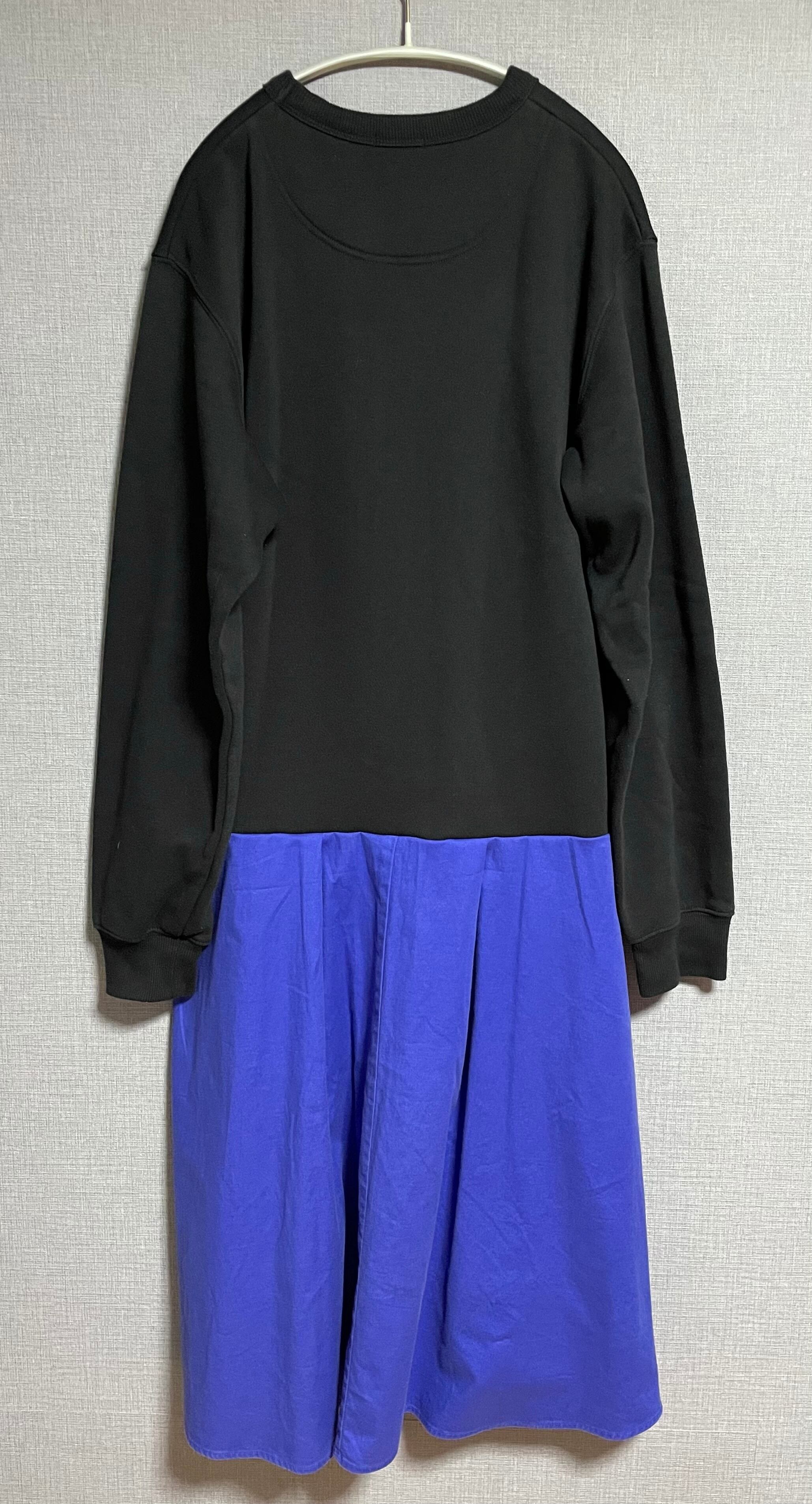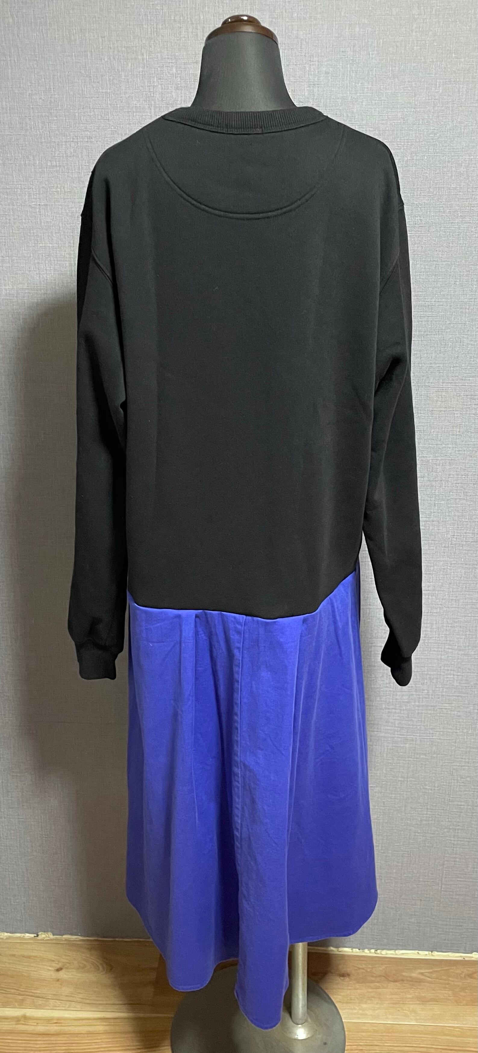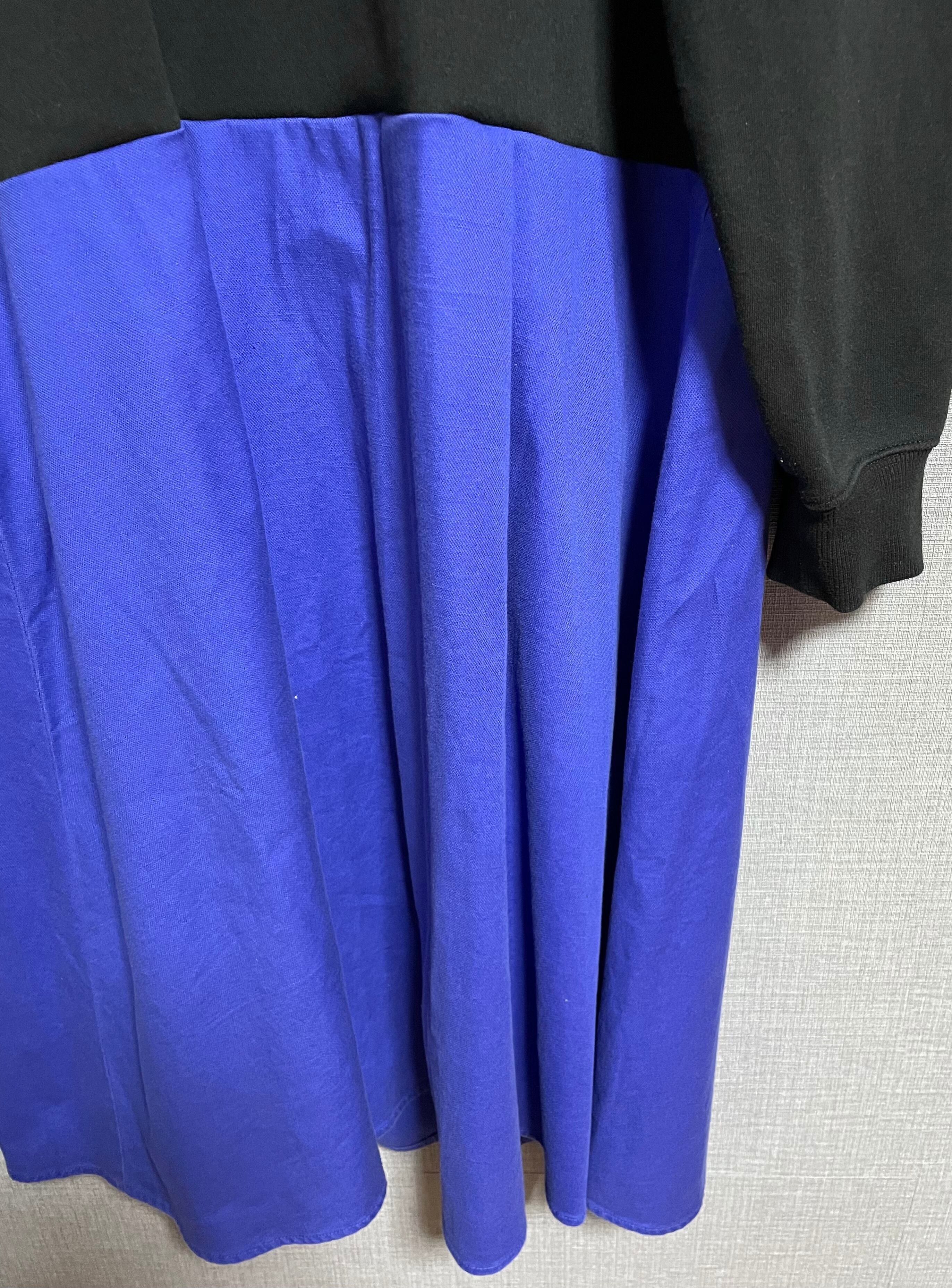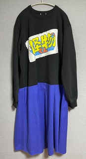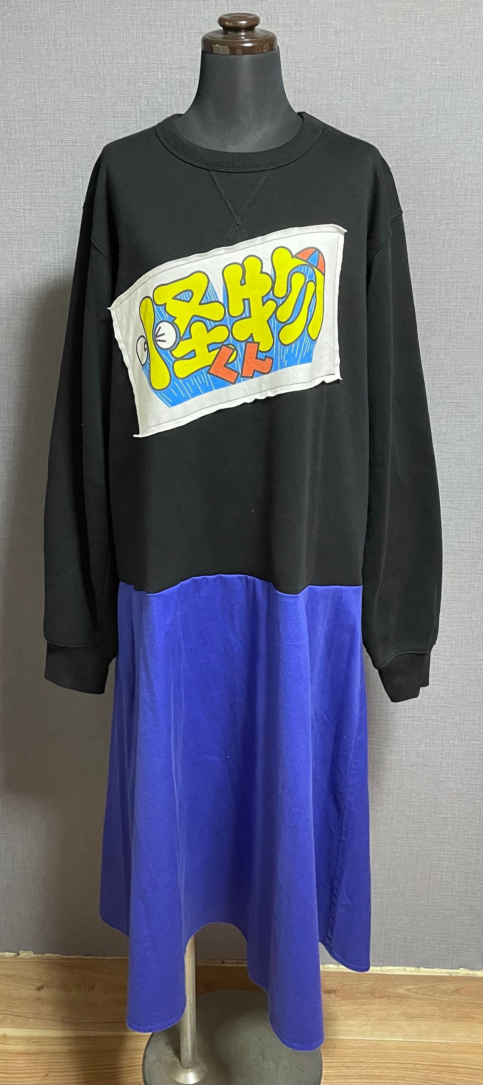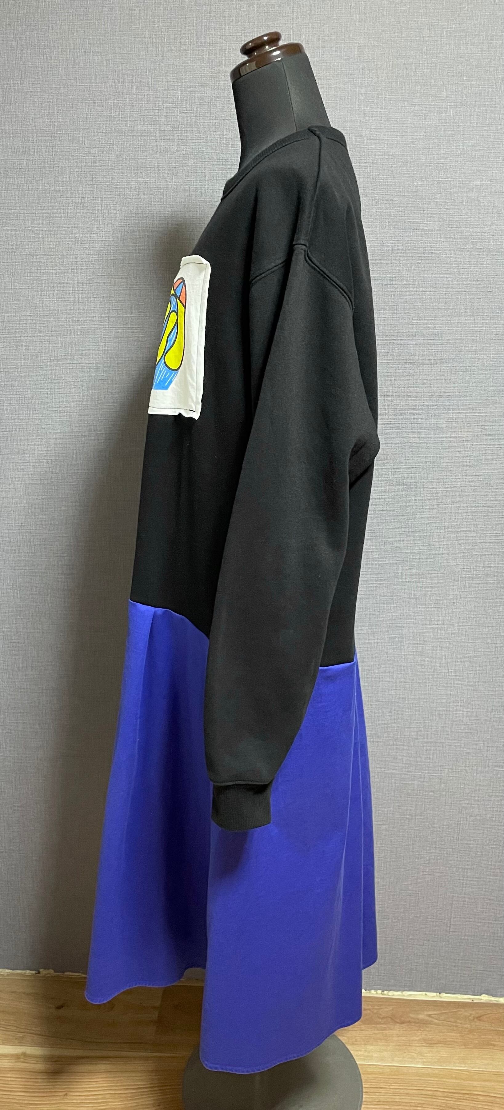 黒スウェットにユカイツーカイなやつを縫いつけ、紫っぽい青系スカートを合わせています♬