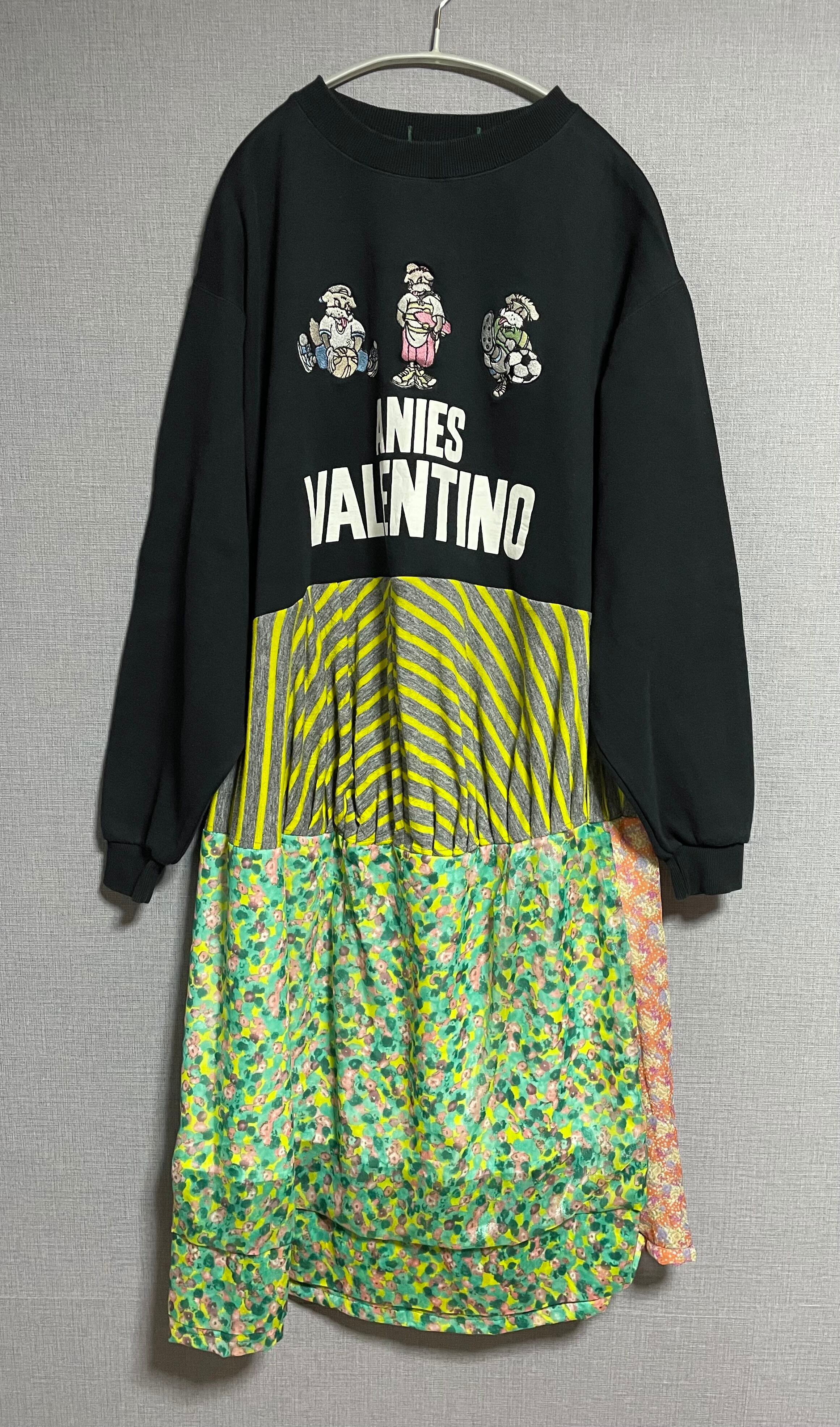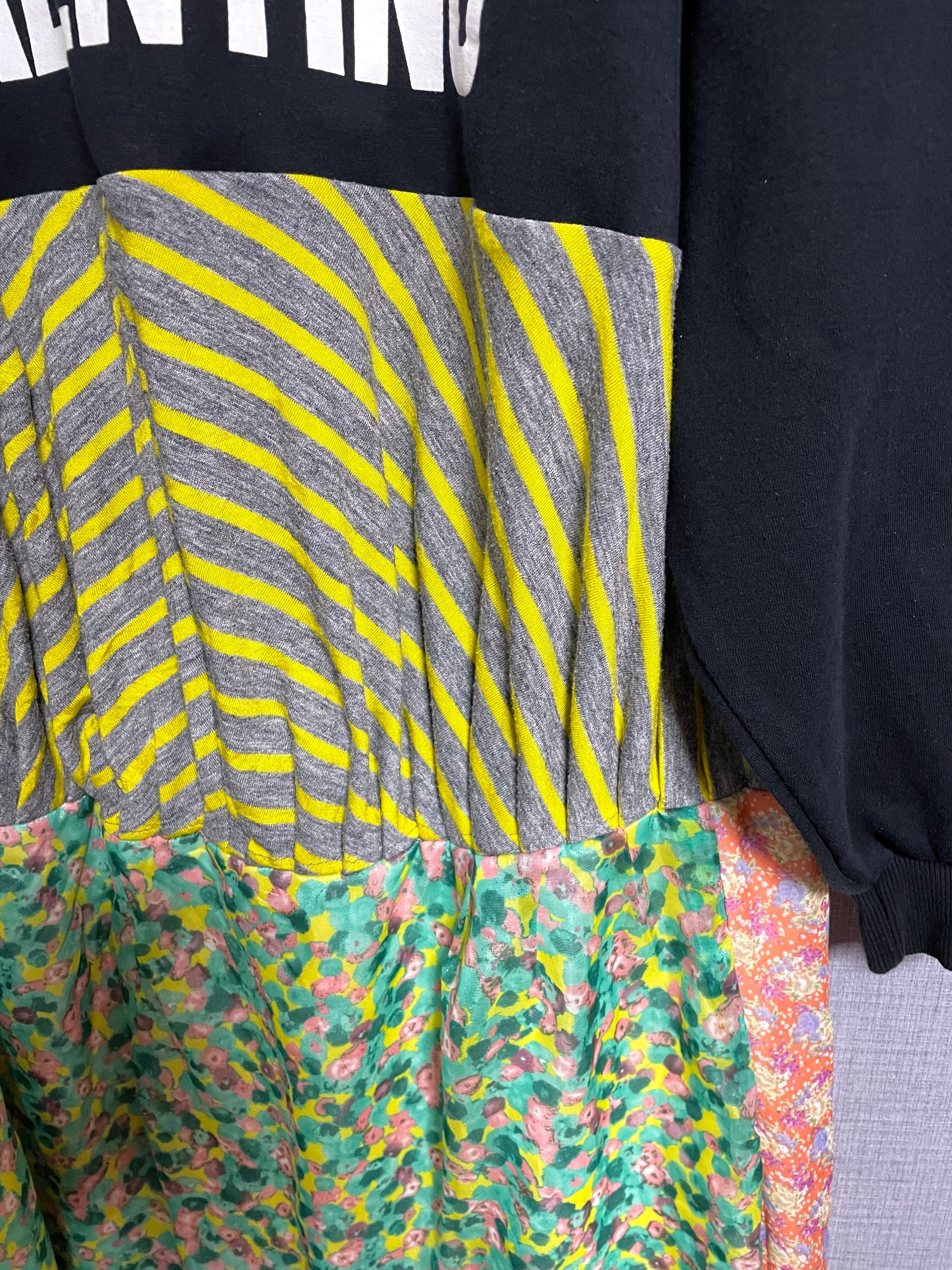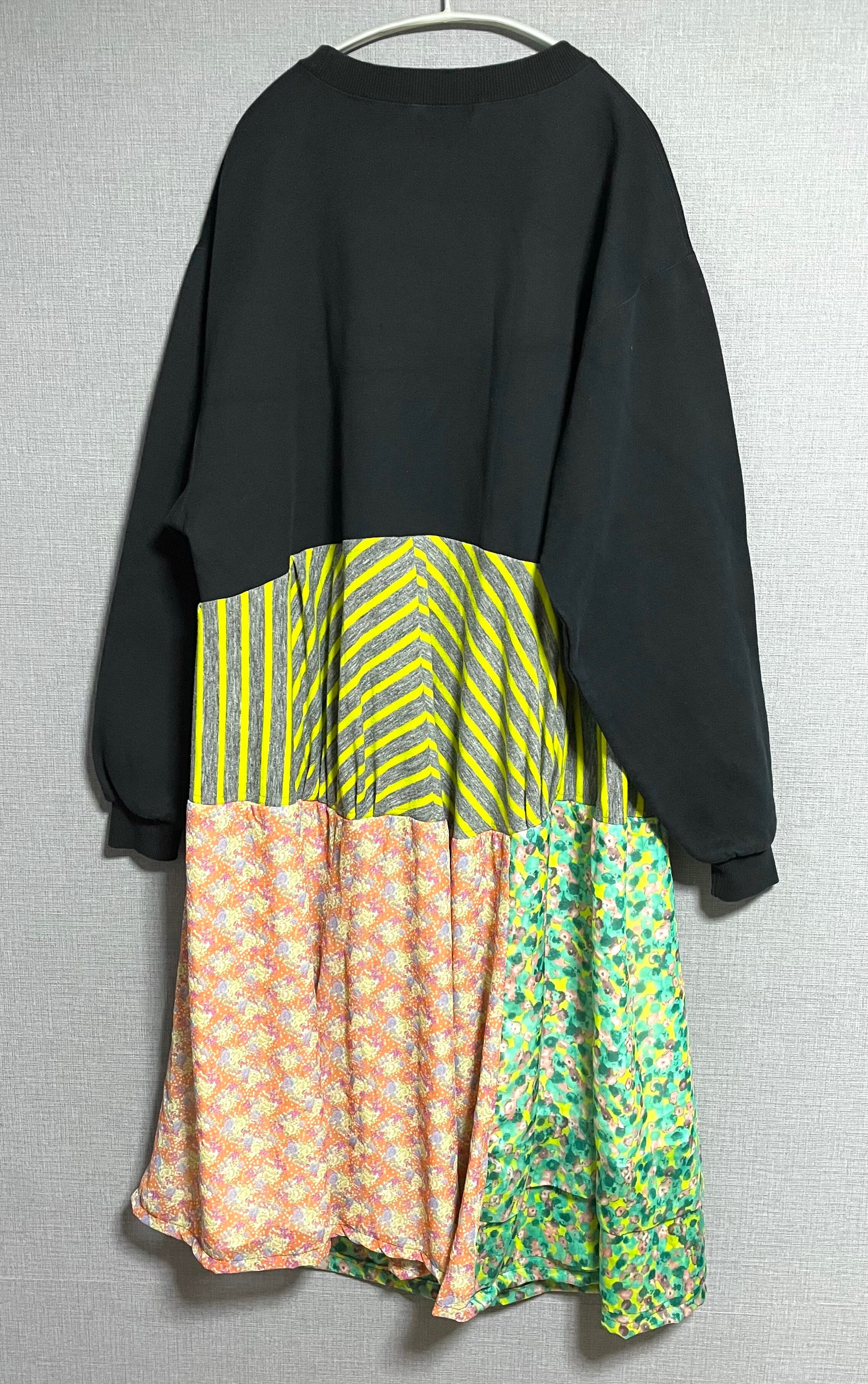 いきったわんちゃんの黒スウェットに、いろんな生地で作ったスカートを合わせています♬
