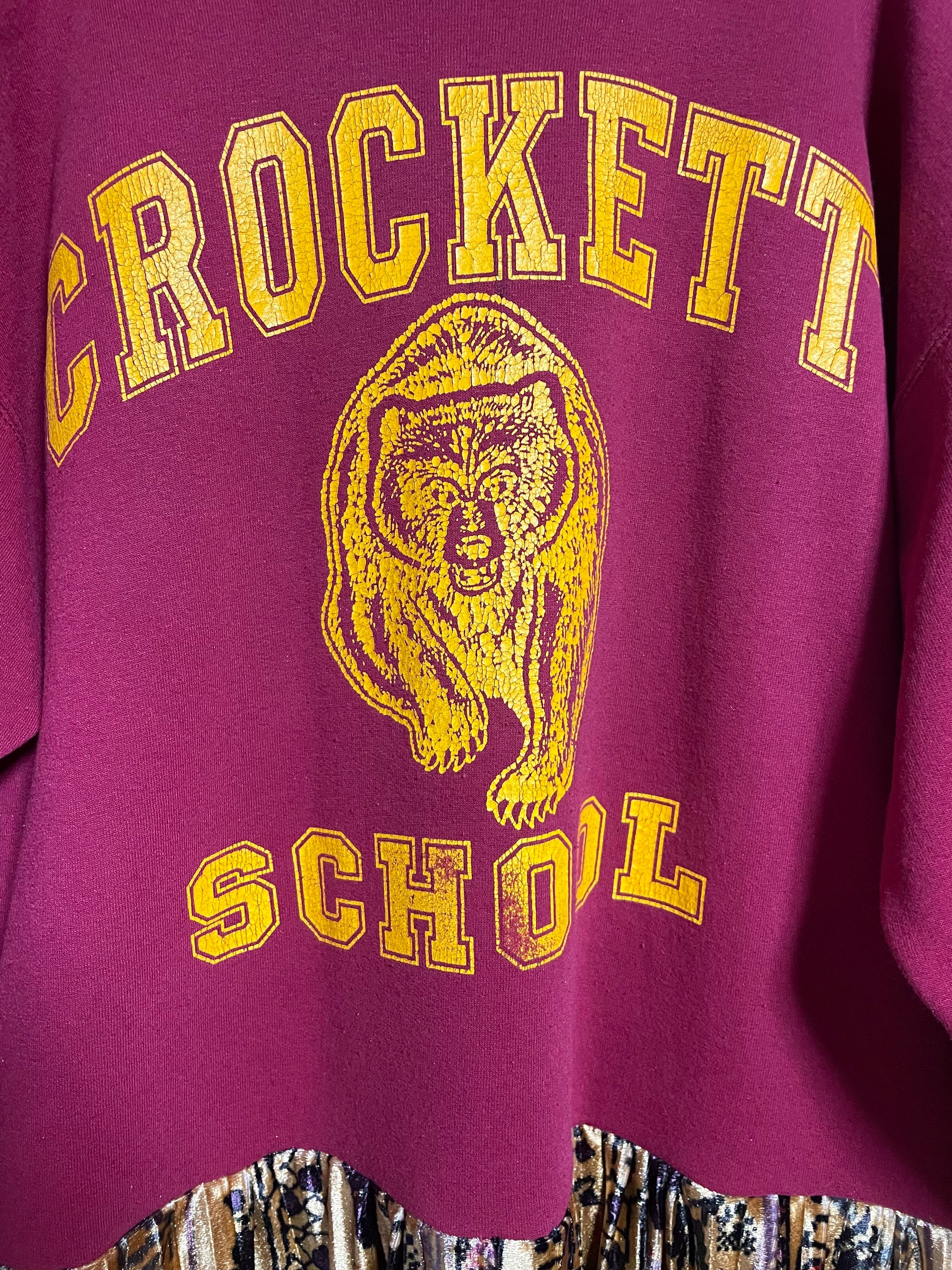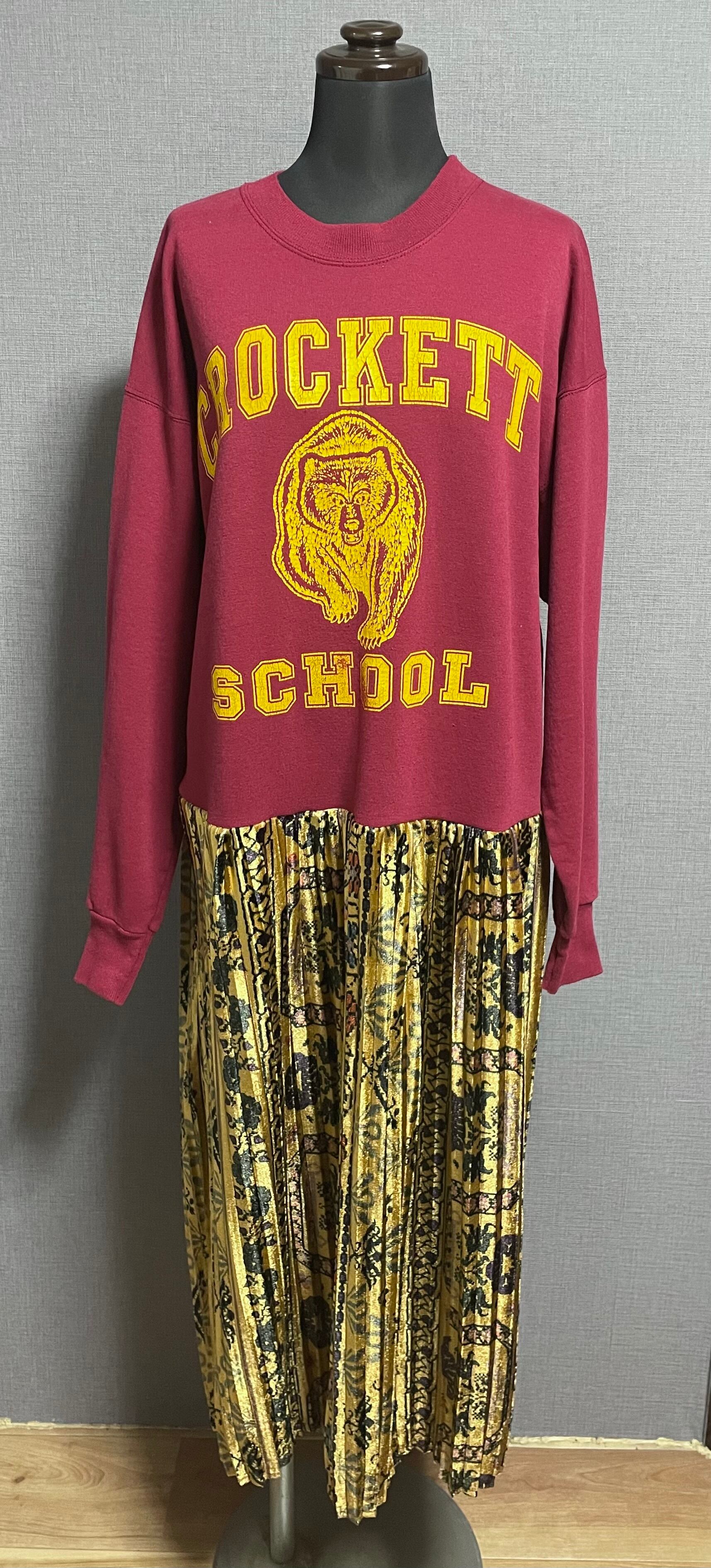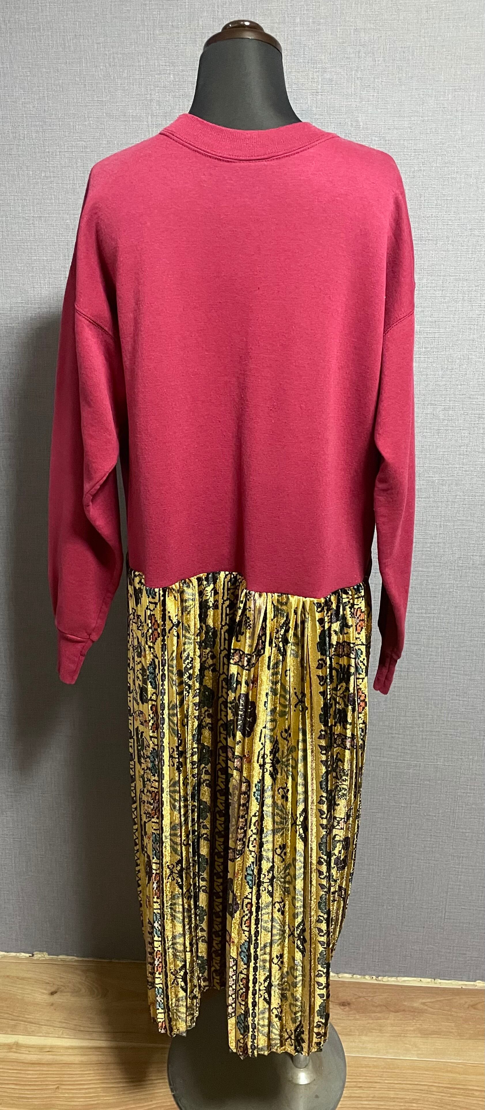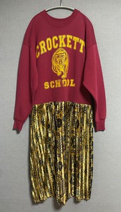 えんじ色のカレッジトレーナーに、ベロア調のプリーツスカートを合わせています♬